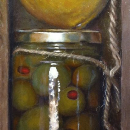 “Pear, Olives, Knife, and Peach” Fine Art Print