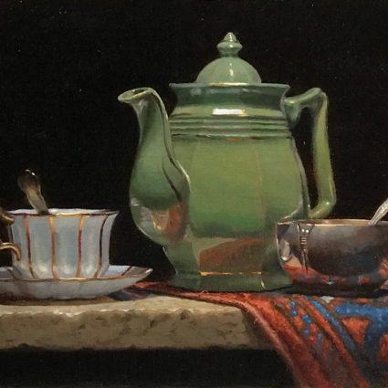Green Teapot and Oriental Rug