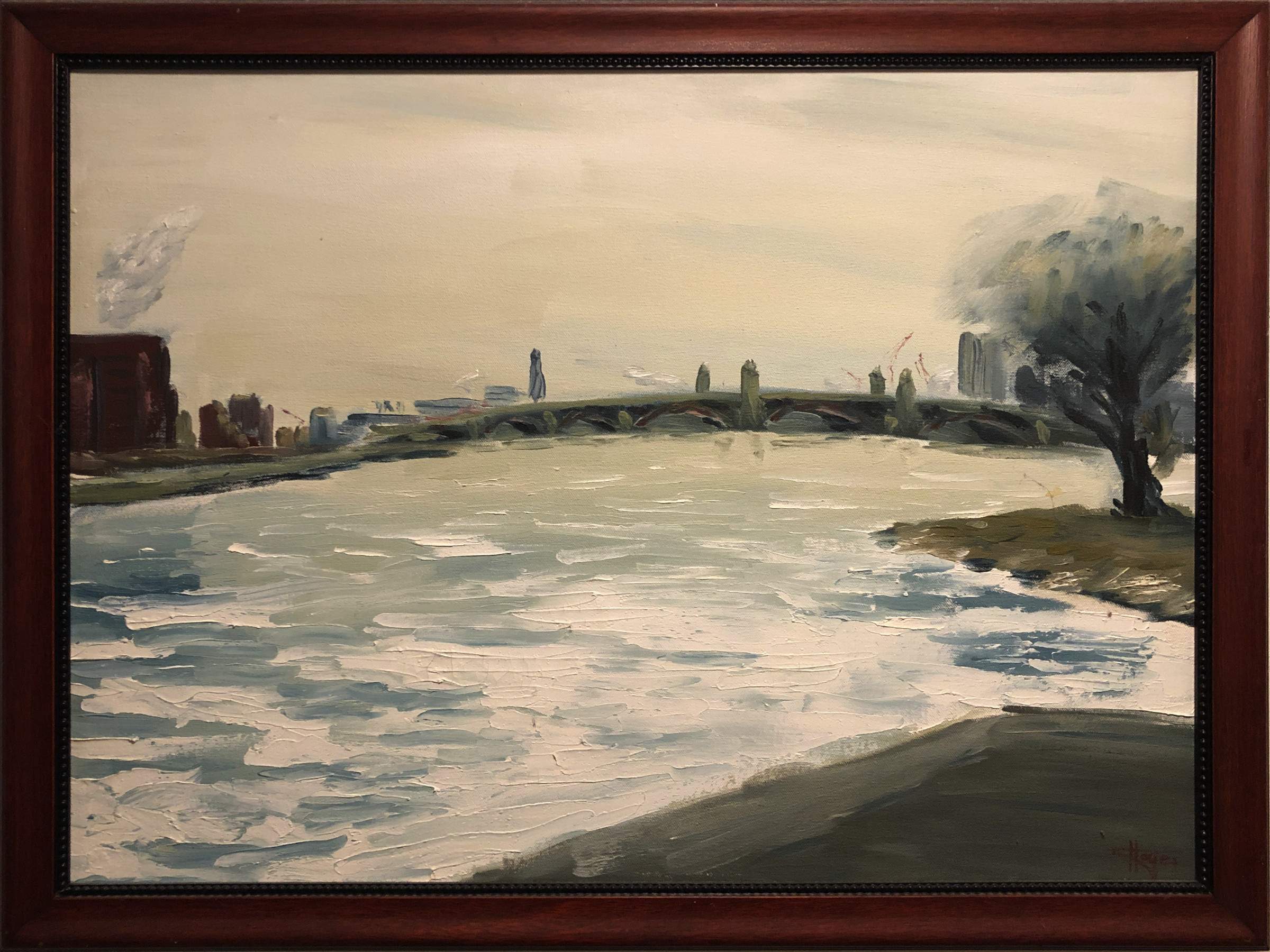 I wanted to go down to the Esplanade so I could paint the ice-covered river and one of the bridges that crosses it.