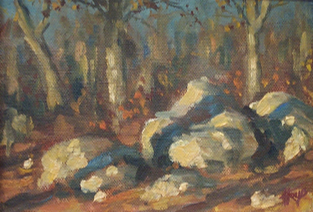 "Sunset Study with Rocks" Oil on canvas, 6x8 inches / 15x20 cm, 2006