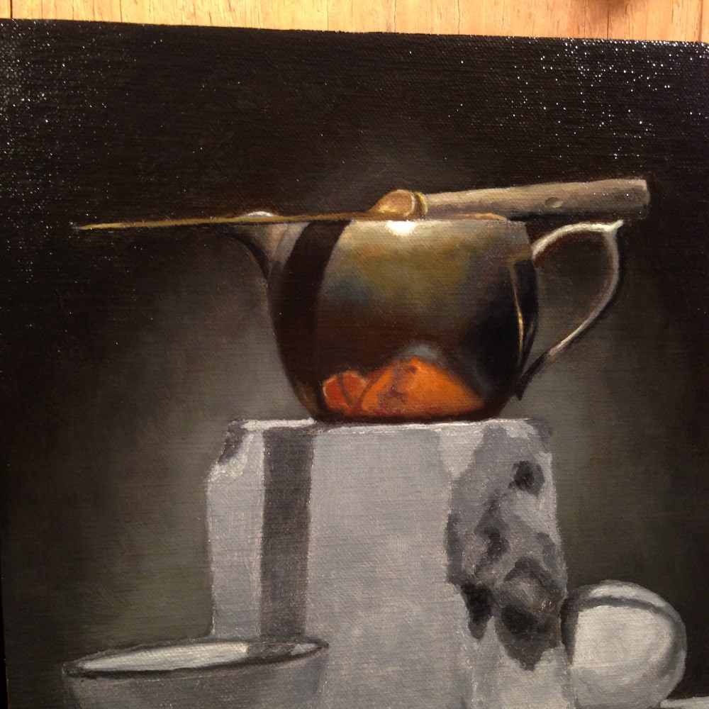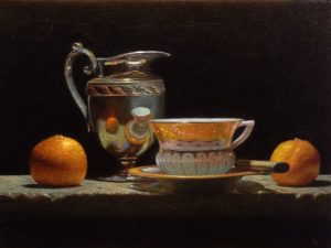 The objects being painted – the model – are carefully arranged in the shadowbox, and the light is fine-tuned to suit the arrangement and desired mood.