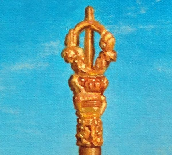 The creation of An Offering to Sky followed a process rooted in classical painting traditions—slow, deliberate, and deeply focused on clarity and atmosphere.