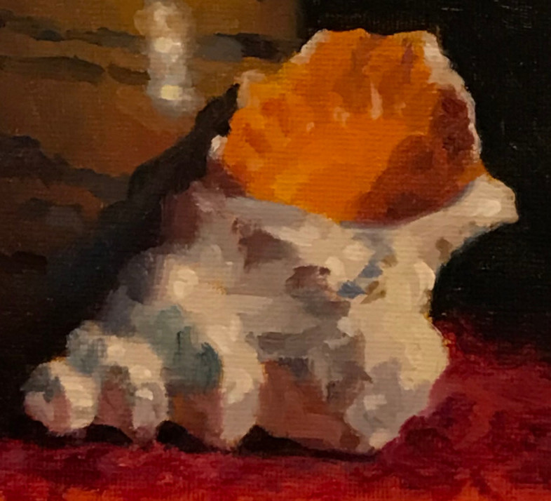 This painting is done with oil on canvas panel, measures 7×5 inches, and is unframed.