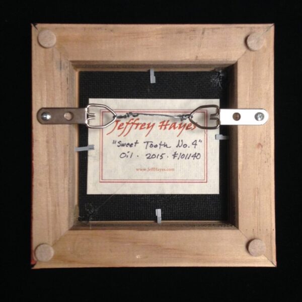 “Cherry Love No. 3” has been meticulously crafted using the finest materials available. Jeffrey Hayes carefully selects oil paint from premier manufacturers, with a strong preference for small artisanal suppliers. A small block of pine was selected, and then cut to this particular shape. A gold-leaf finish was applied to the edges and the bevel. The painting itself was created using traditional techniques handed down for over six centuries.