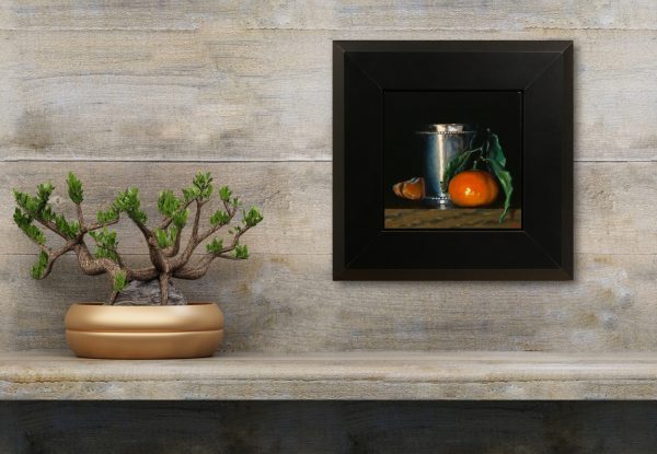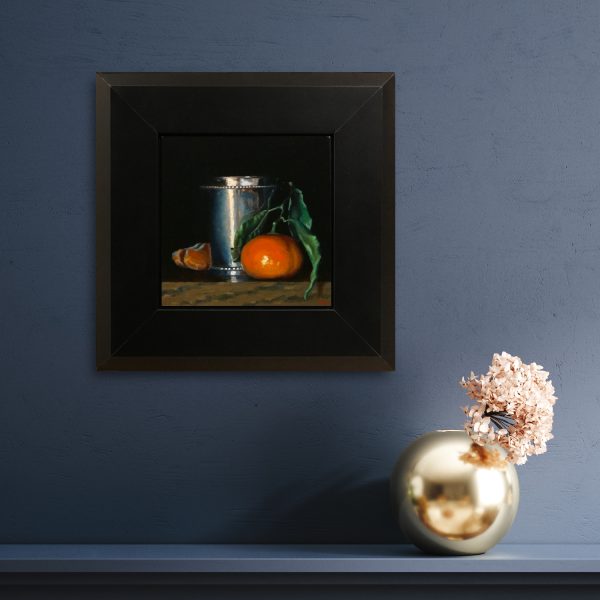 “Clementines and Silver Cup” is made with the best materials using painstaking traditional methods. (visit my process page to learn more about how these paintings are created)
