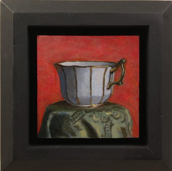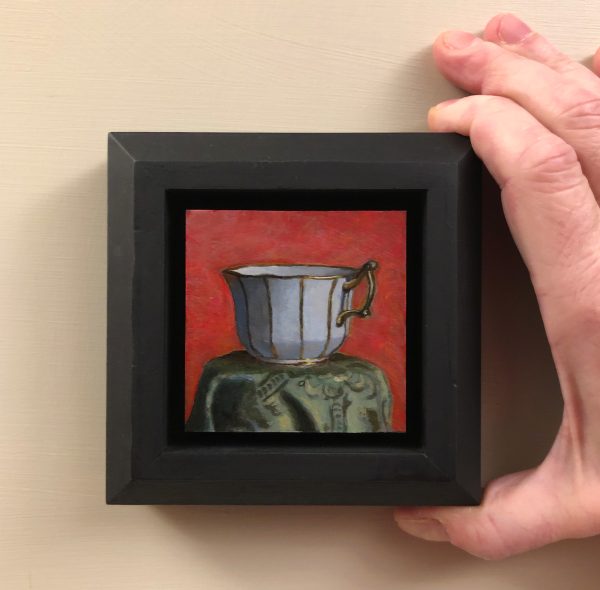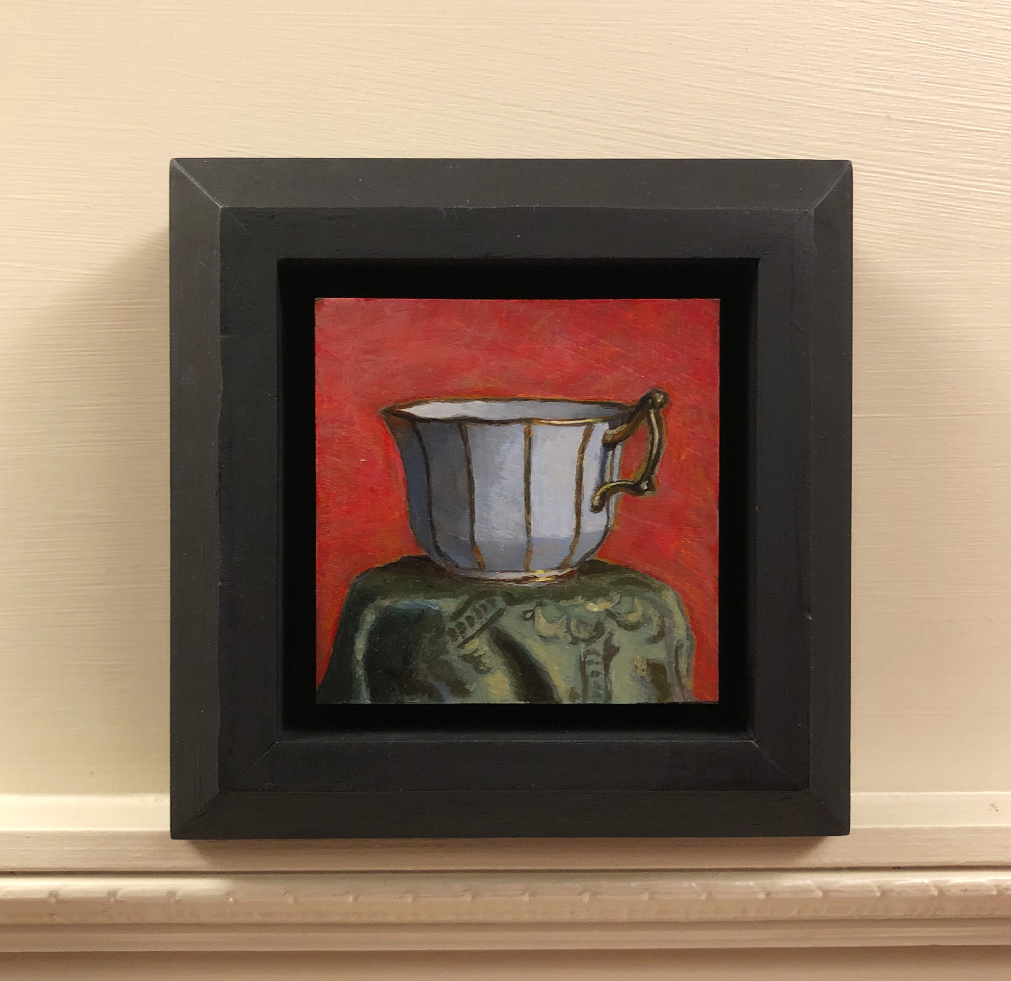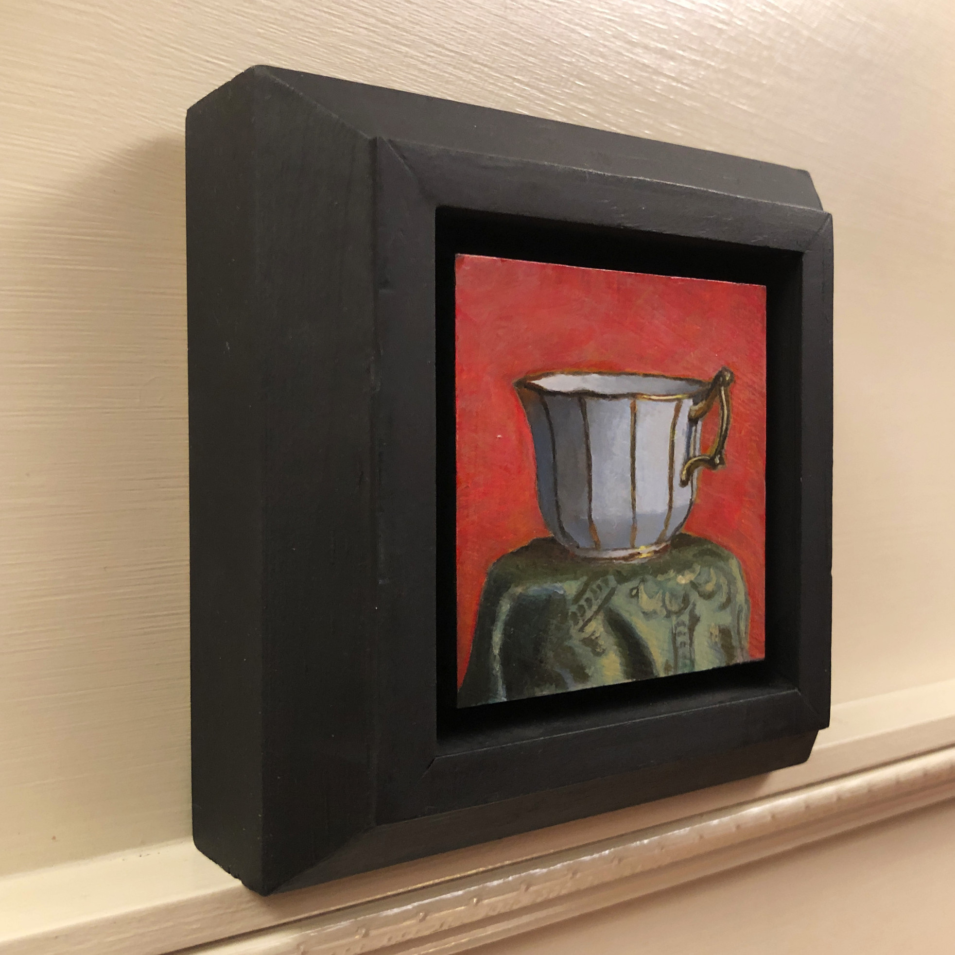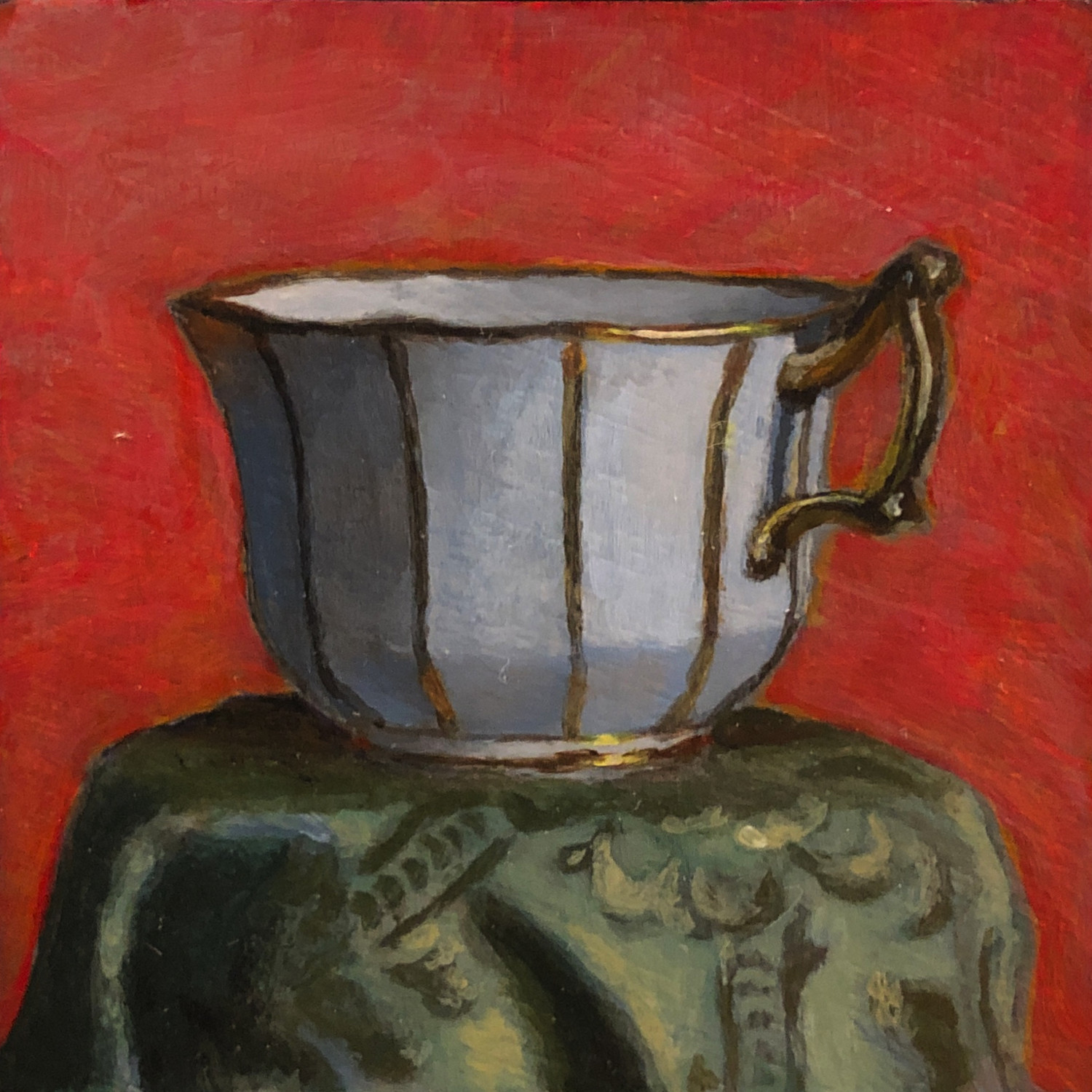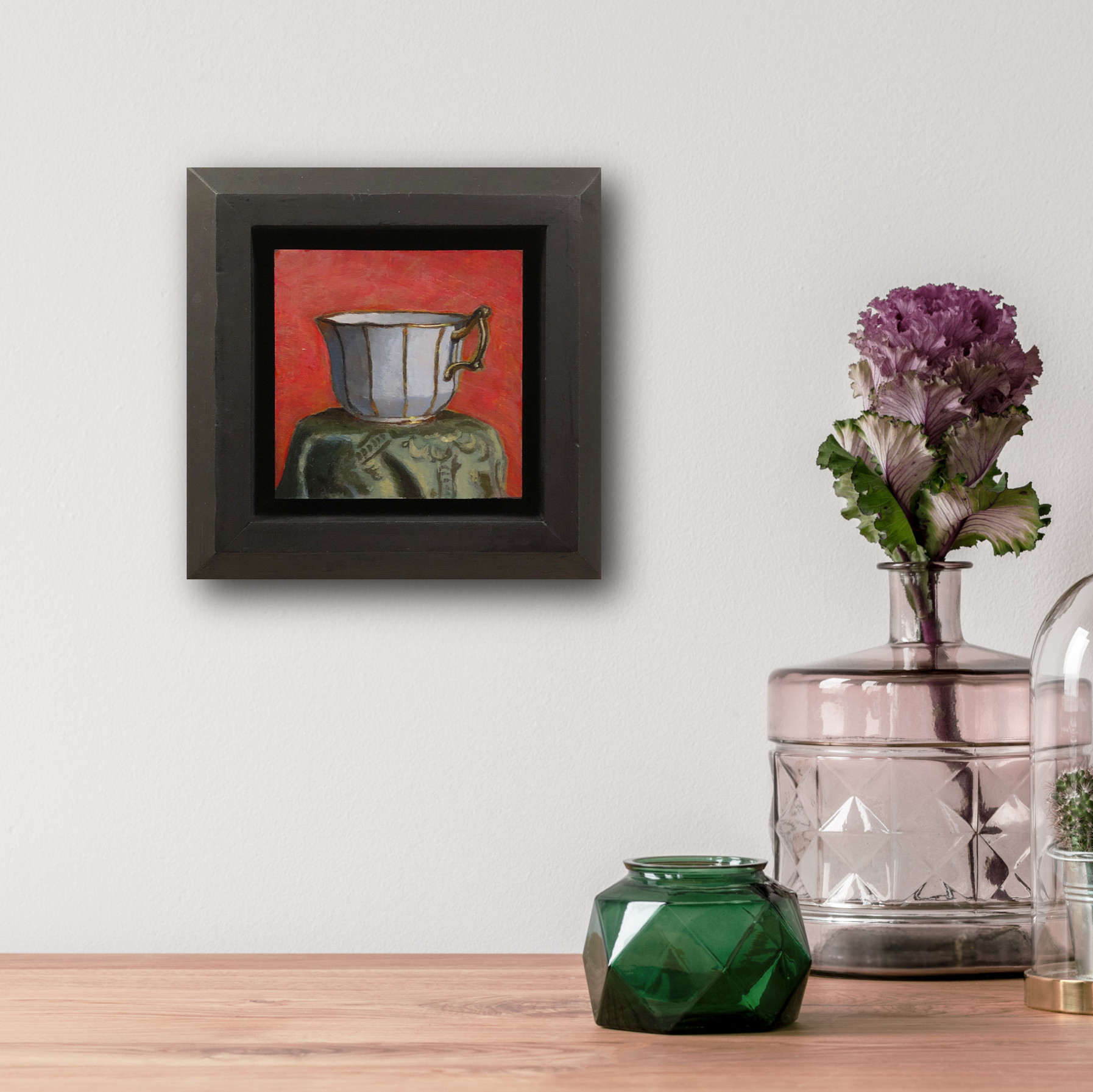 "Golden Teacup on Red" An Original Miniature Acrylic Painting