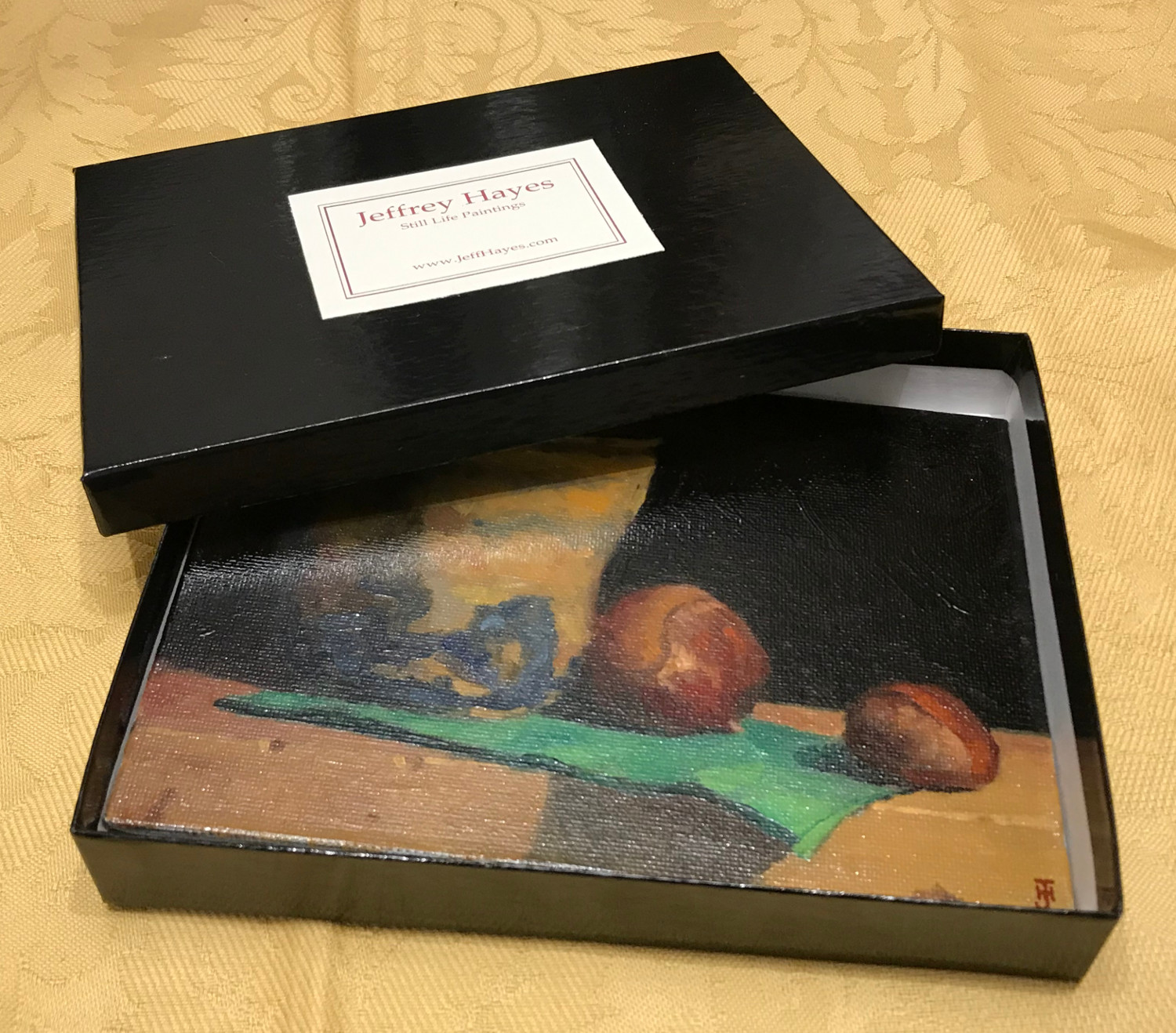 This painting is done with oil on canvas panel, measures 7×5 inches, and is unframed.
