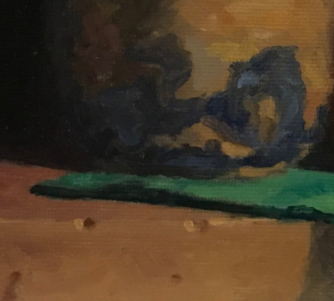 This painting is a study that explores color relationships, design, and other aspects of the craft of painting.
