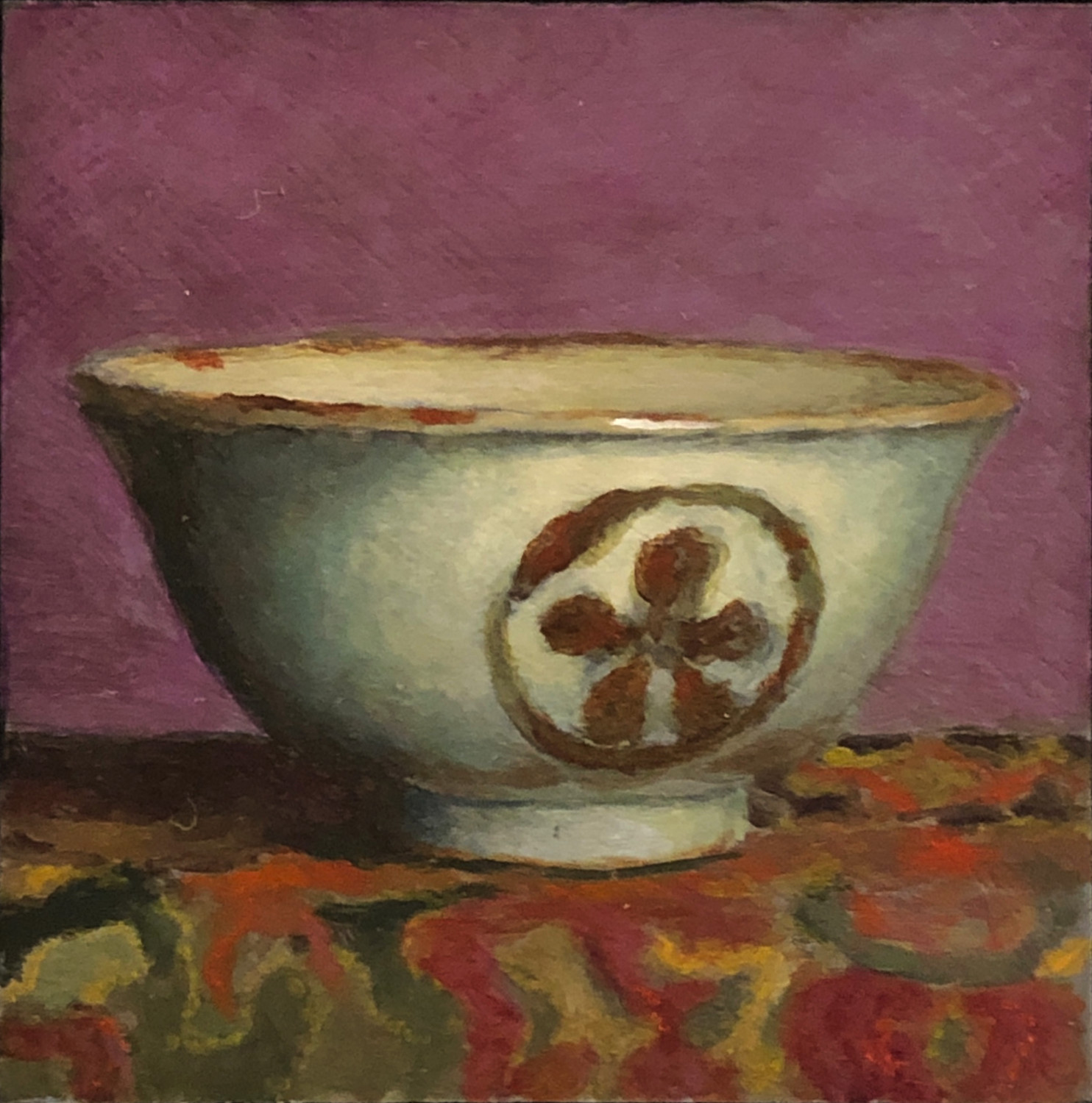 "Handmade Teacup Against Violet" An Original Miniature Acrylic Painting