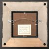 Done with oil on panel, and measuring 5 x 5 inches, it is set in a flat panel black frame with a beveled edge. The outer dimensions of the frame are 11 x 11 inches.