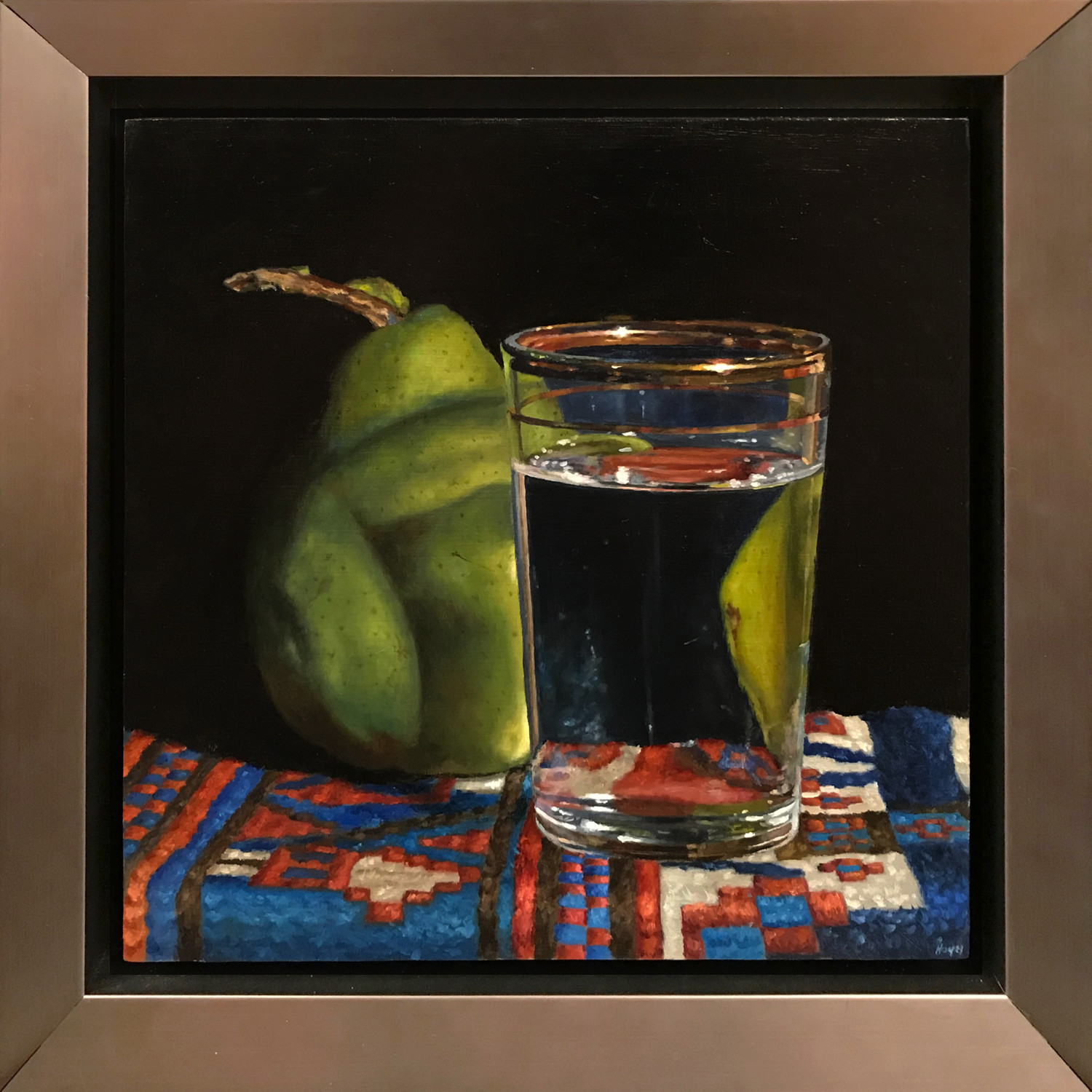 "Pear, Waterglass, and Oriental Rug" An Original Still Life Painting