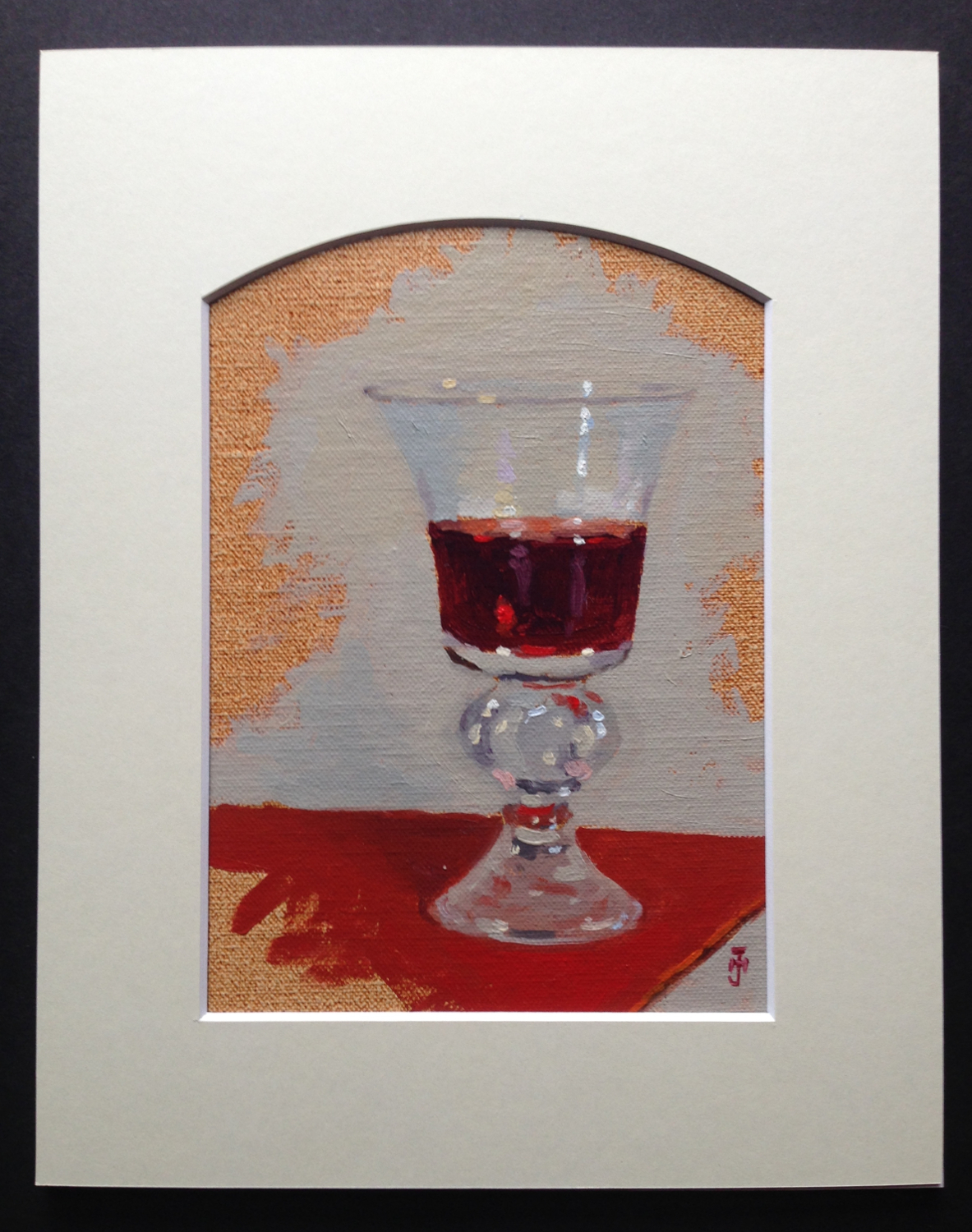 Painted with oil on canvas, this sketch measures 8 x 10 inches (20×25 cm). The painting is presented with the matte shown in the image. This cream-colored matte showcases the painting under a shallow, arched opening – a dramatic presentation. Measuring 8 x 10 inches – a standard size – this painting can immediately and easily be placed in any standard 8×10 frame. Of course, your framer can also create a custom presentation for it.