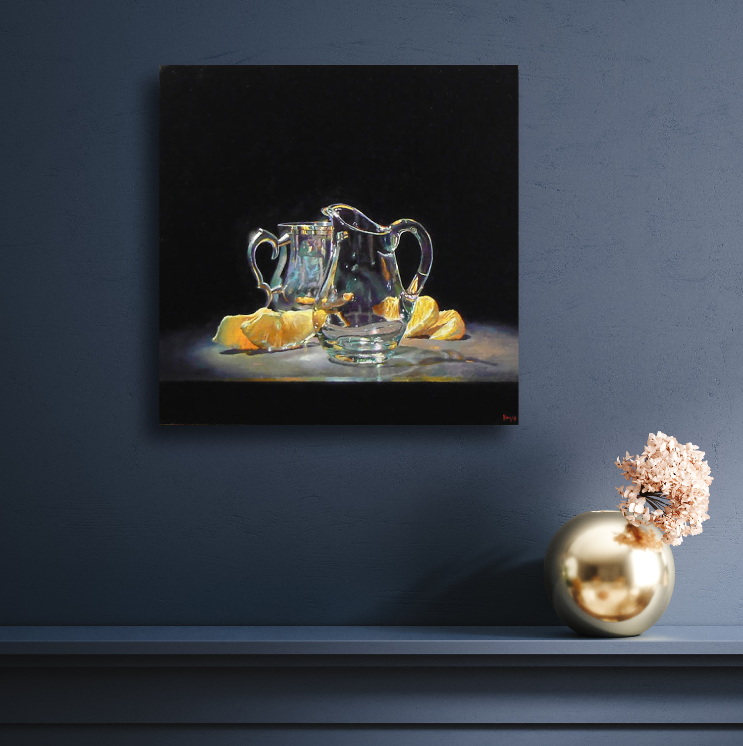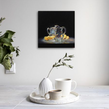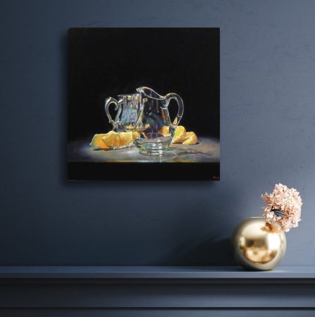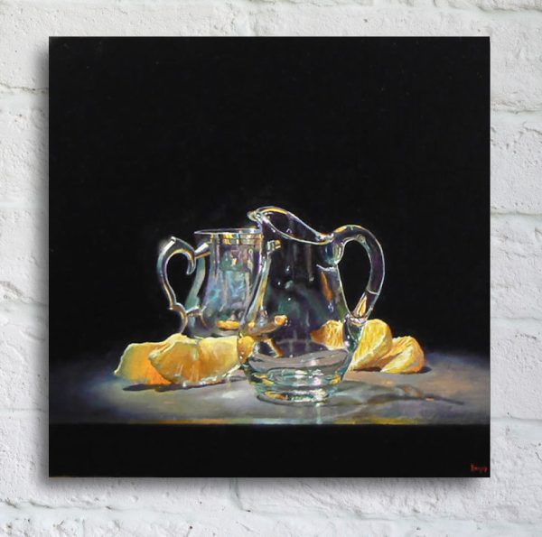 “Silver, Glass, Oranges” Print On Canvas