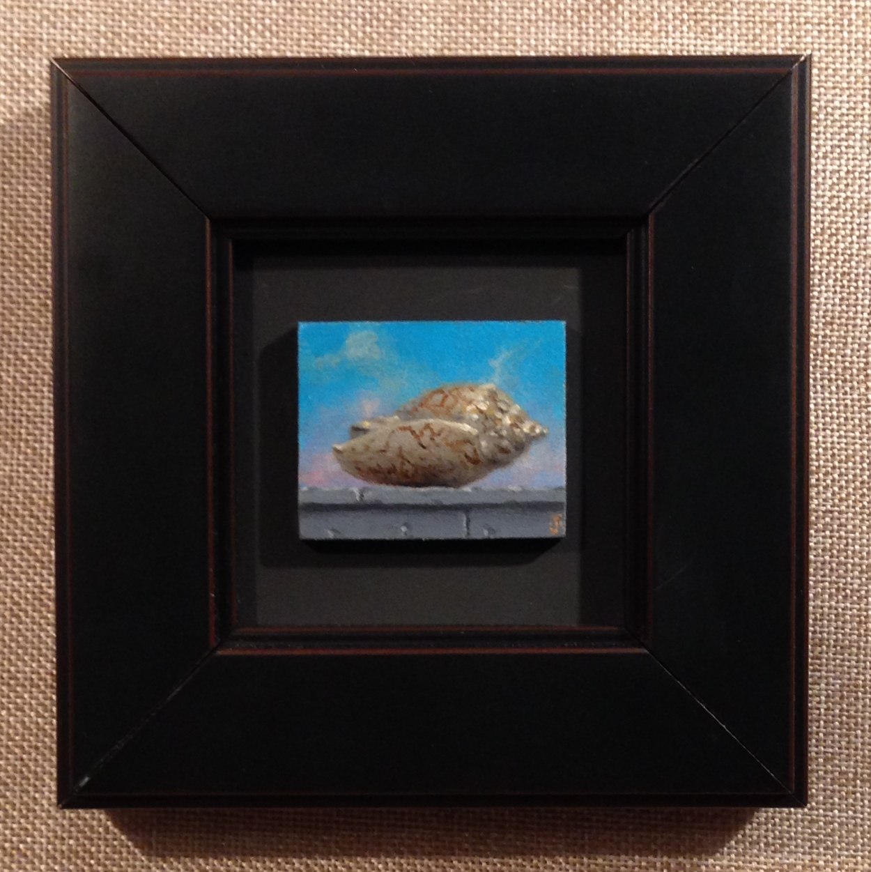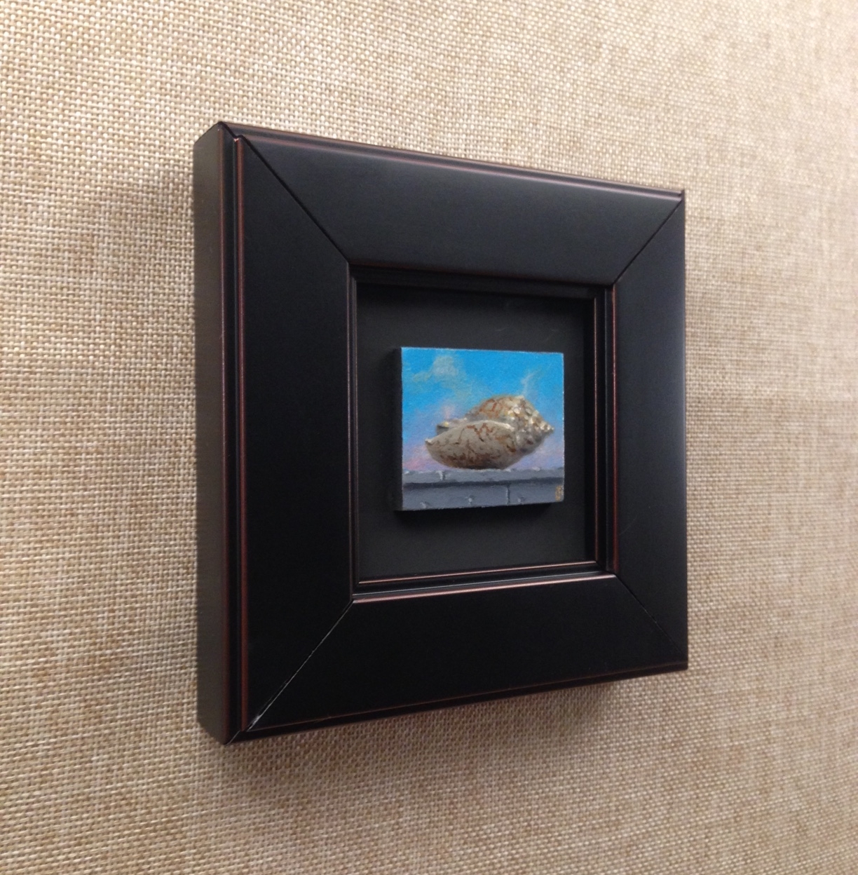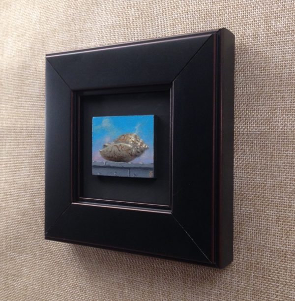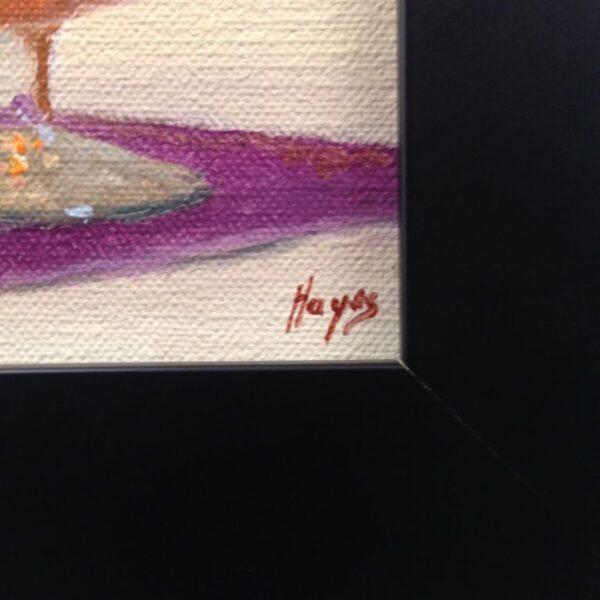 Measuring 1.5 x 2 inches (4 × 5 cm), this painting is presented in a classic black frame with 5 × 5-inch outer dimensions. Felt pads are affixed to each corner of the back of the frame to protect your wall and ensure the artwork rests perfectly parallel.