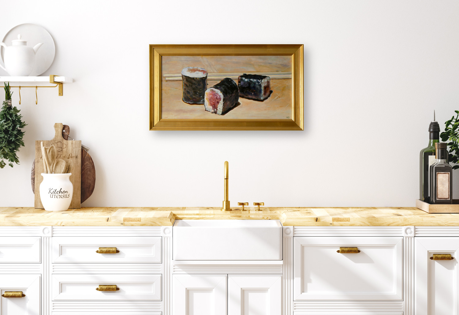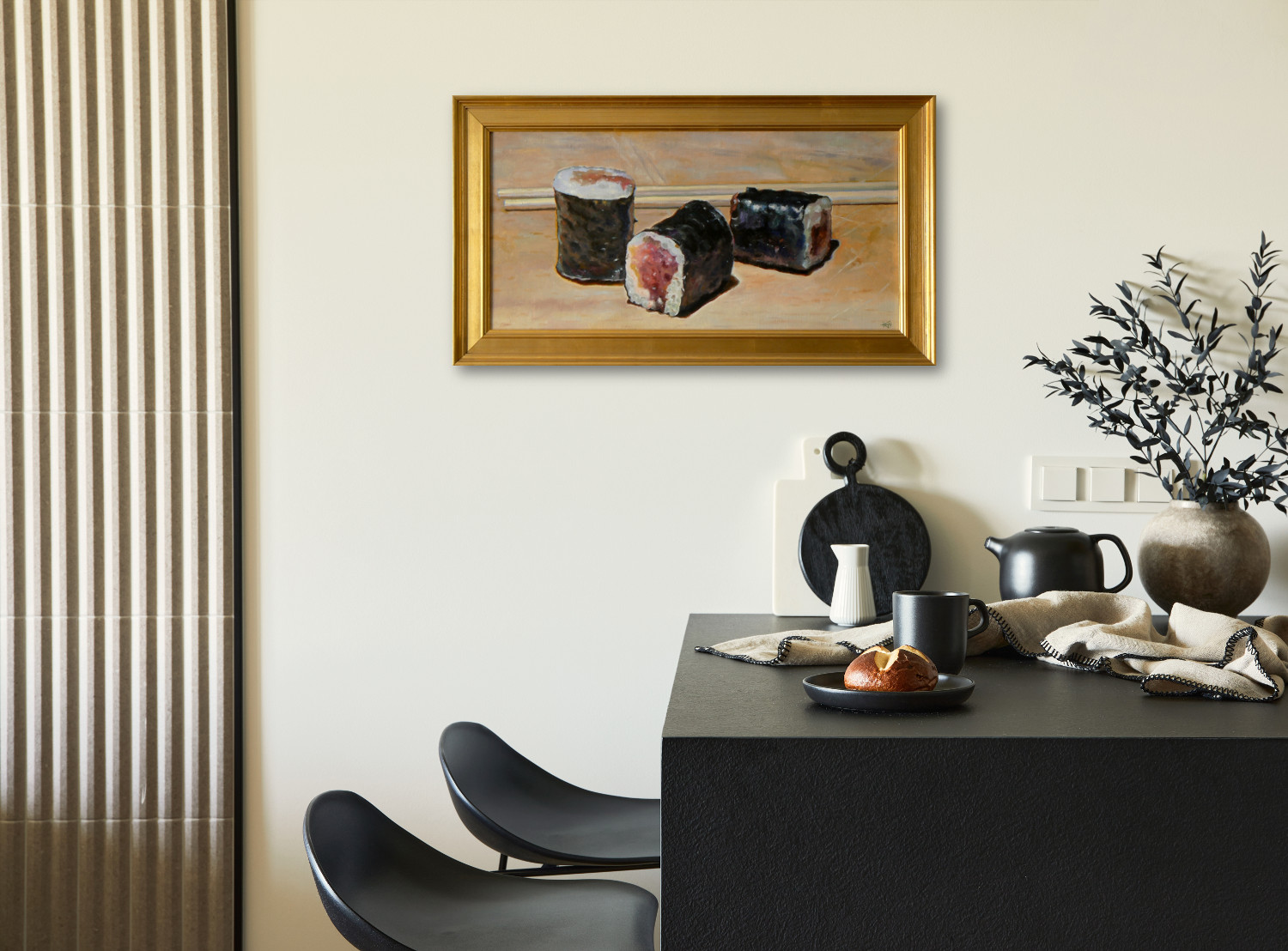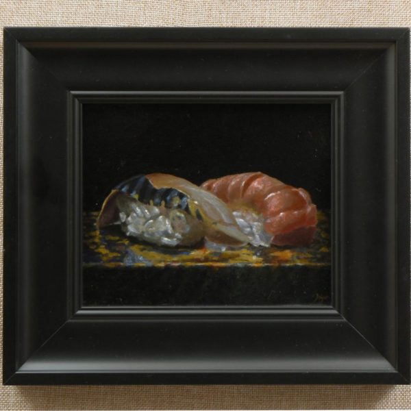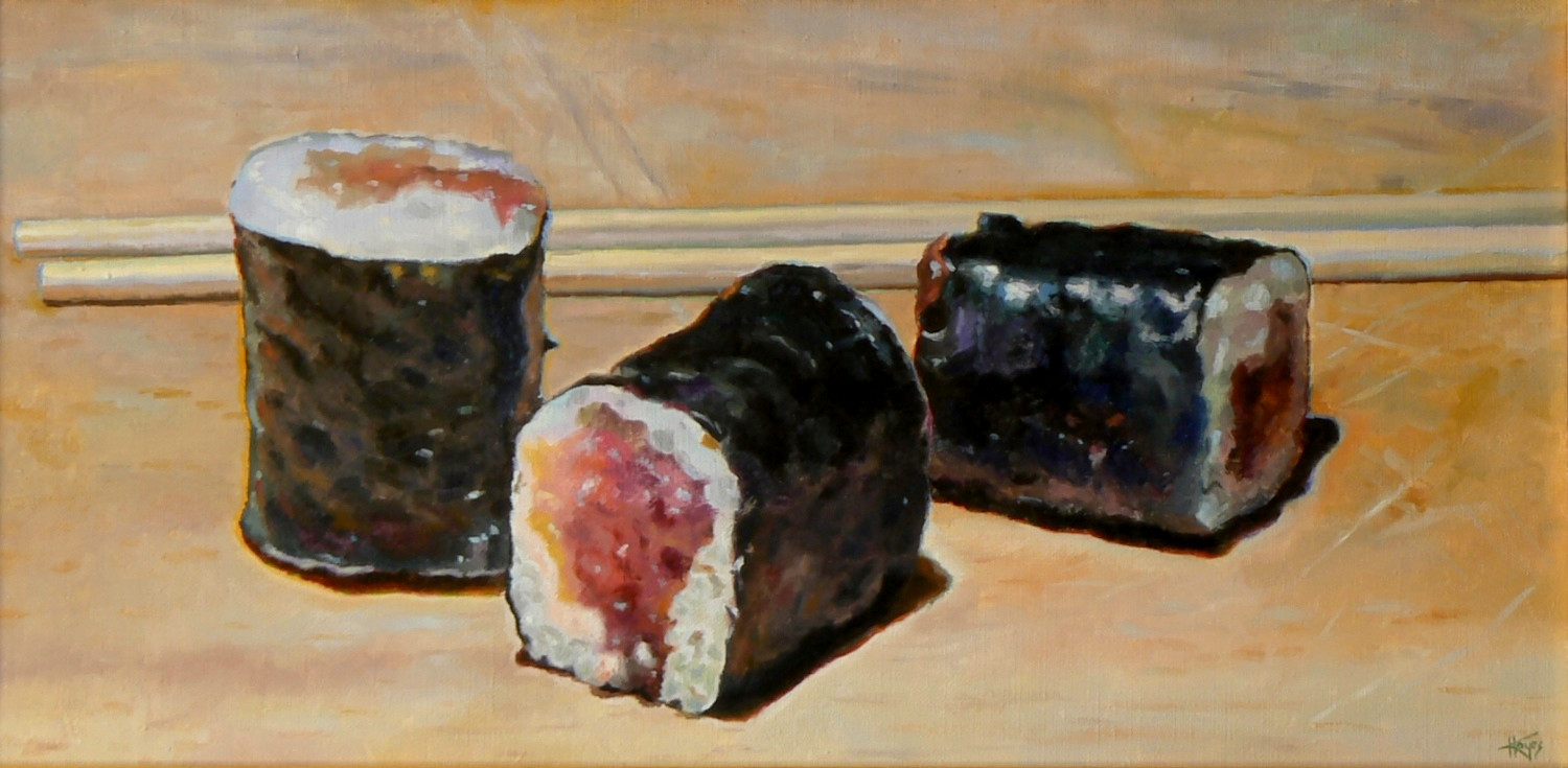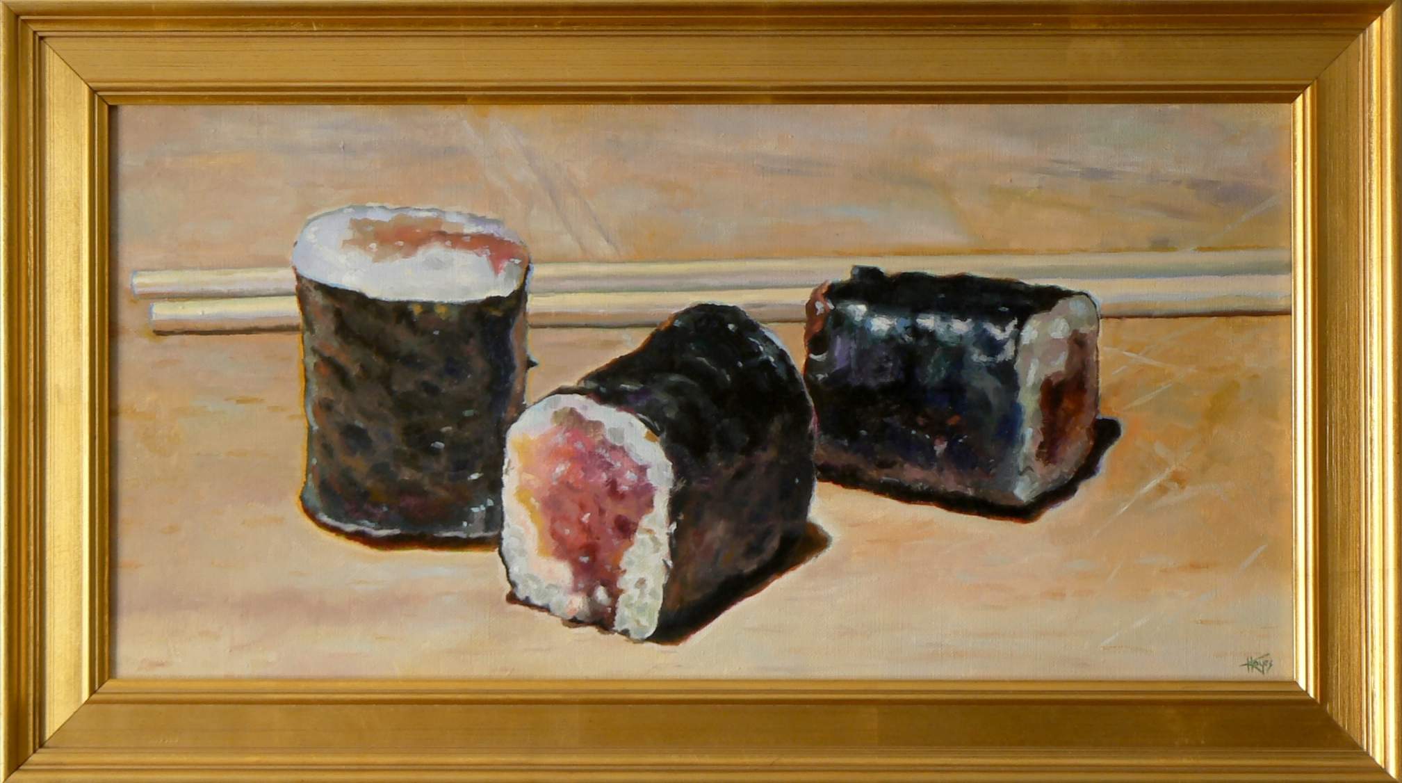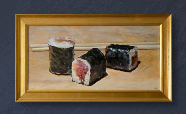 “Sushi Triplet” is an original still life painting, done with oil on linen.