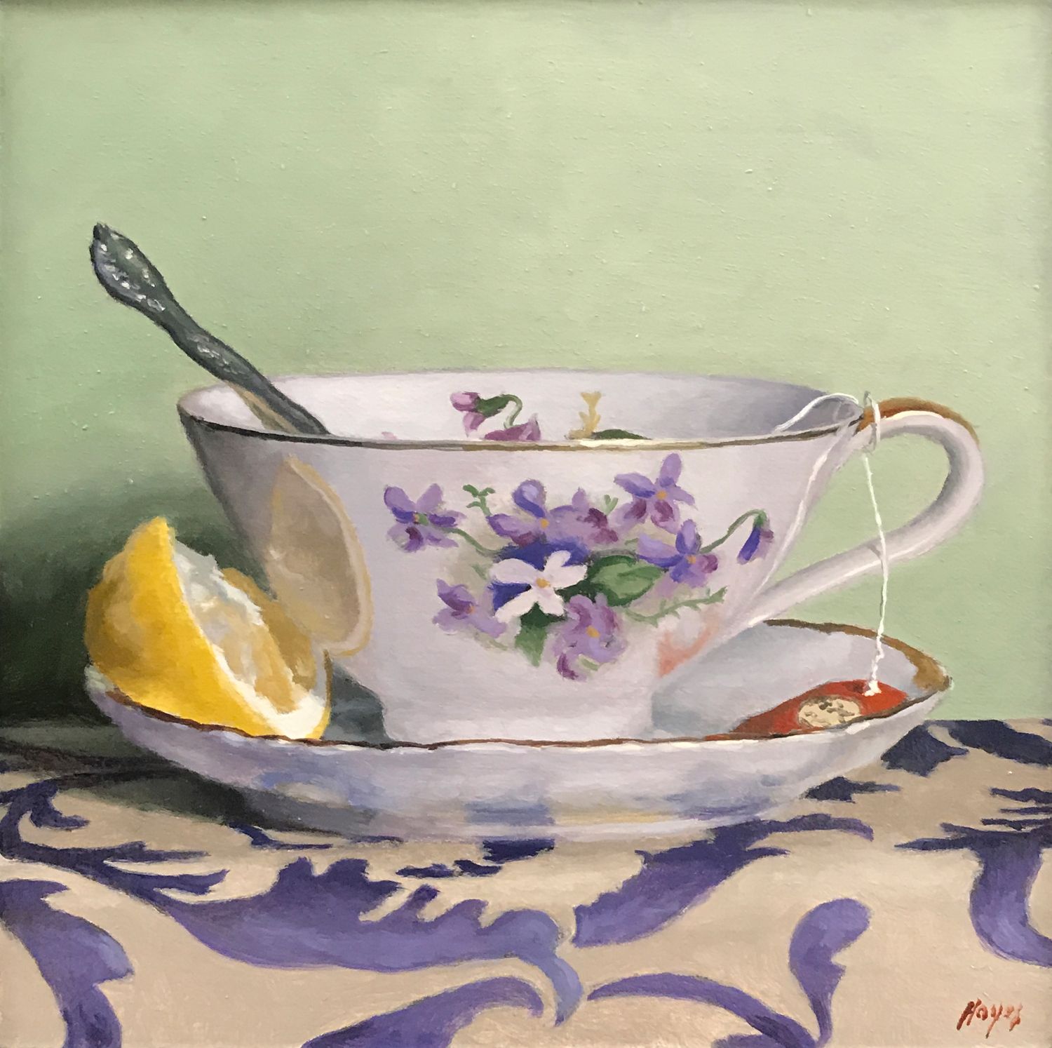 “Teacup, Lemon, Silver” by Jeffrey Hayes captures the moment of still contemplation that comes naturally sitting with a cup of tea.