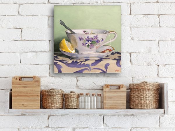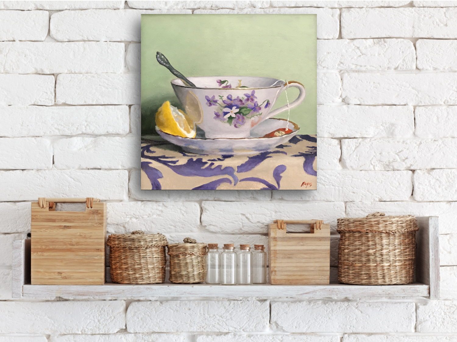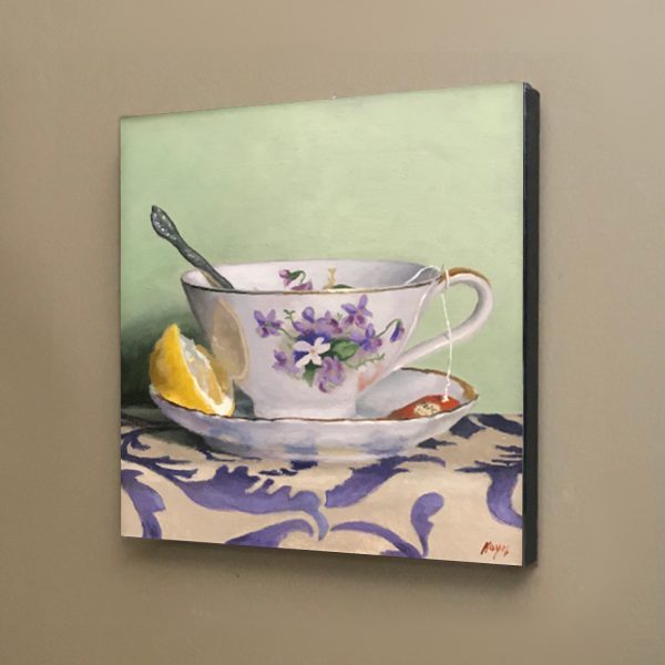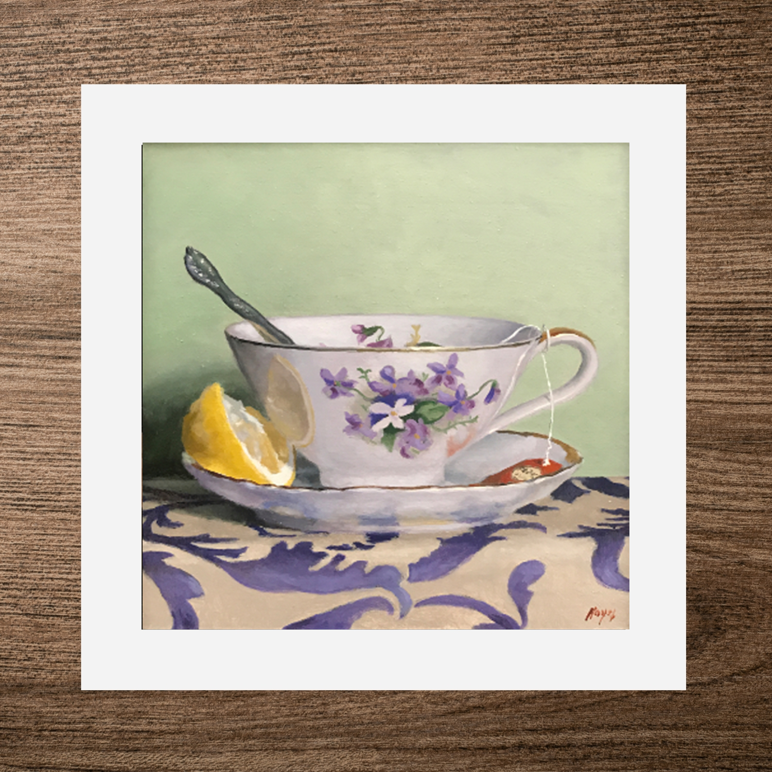 “Teacup with Red Napkin and Purple Saucer” Fine Art Print