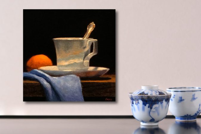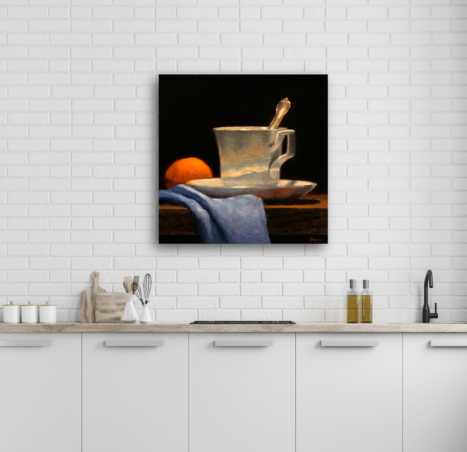 “Teacup, Orange, Blue Silk” Fine Art Print