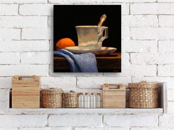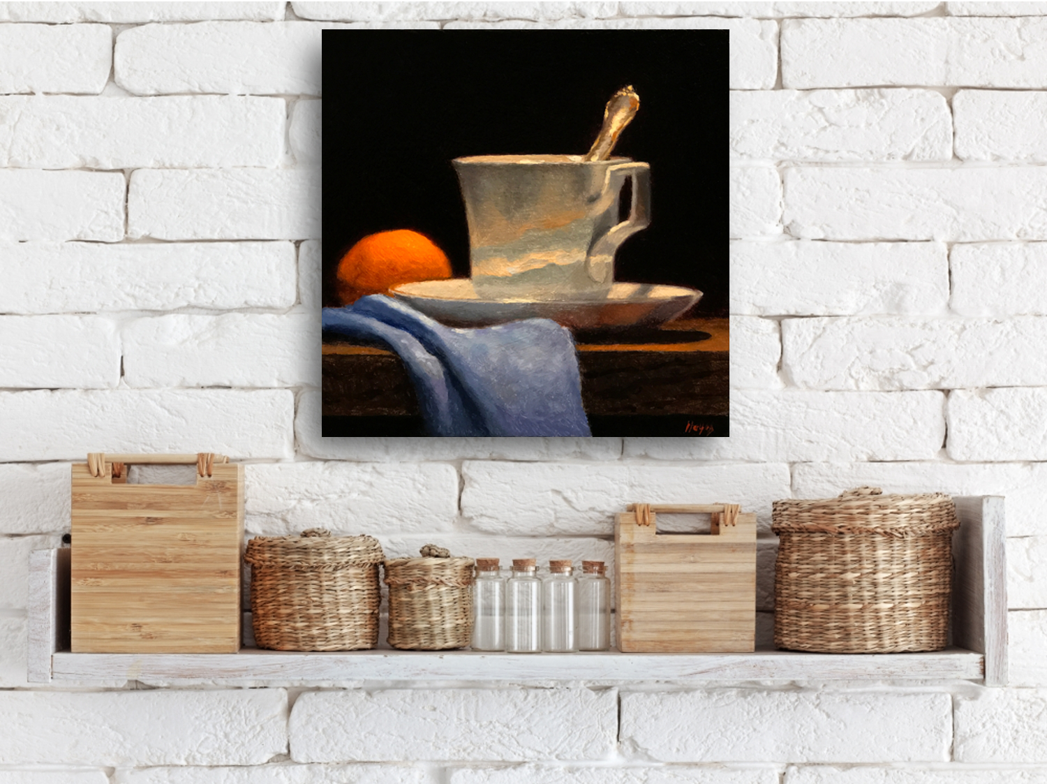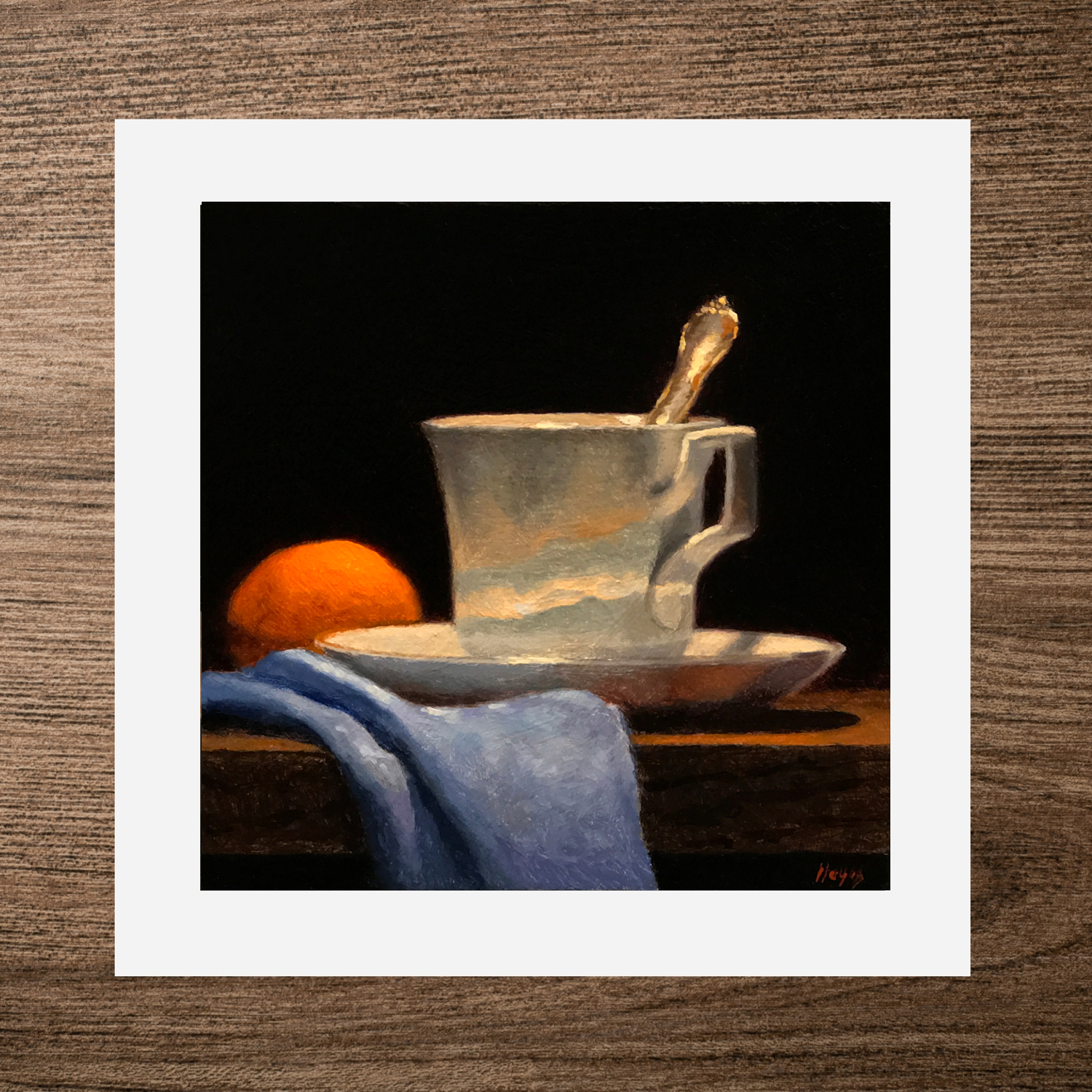 “Teacup, Orange, Blue Silk” Fine Art Print