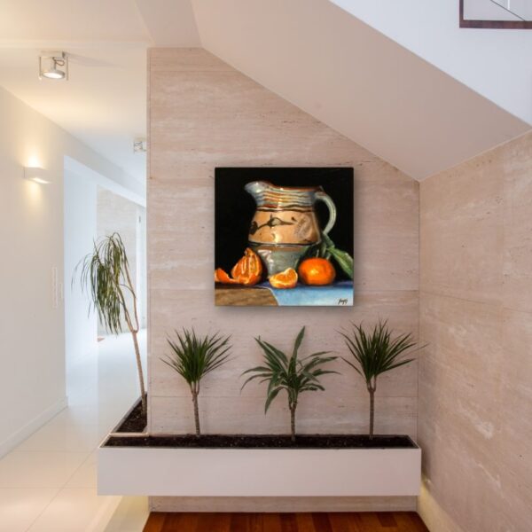 “Teacup with Oriental Rug XV” captures the moment just before taking the first sip – a gateway into the calm and quiet contemplation that a cup of tea often brings.