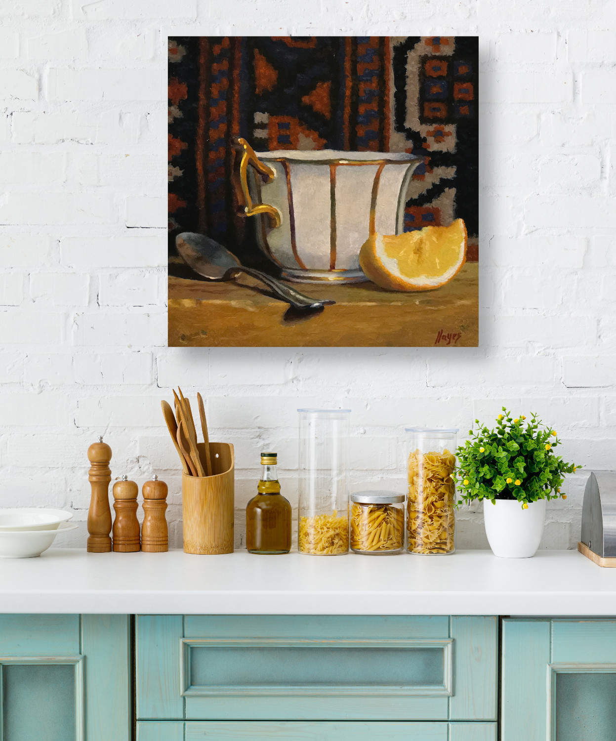 “Teacup with Oriental Rug XV” Fine Art Print
