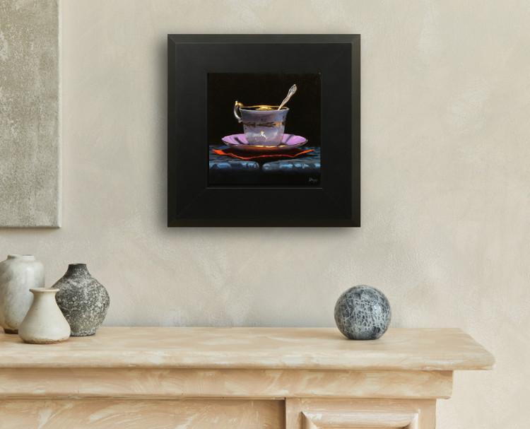 "Teacup with Red Napkin and Purple Saucer" An Original Still Life Painting