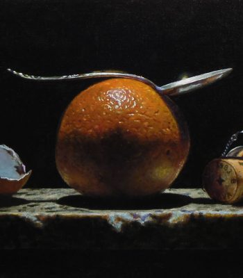“Contemplation: Silver and Orange”, oil on linen, 9×12 inches, 2017, Sold