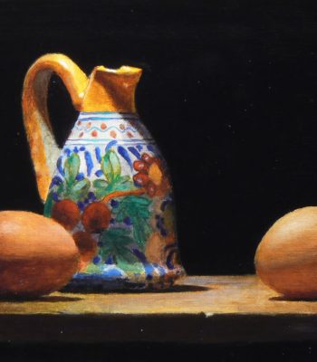 “Mexican Pitcher and Two Eggs”, oil on panel, 6×8 inches, 2013, Sold