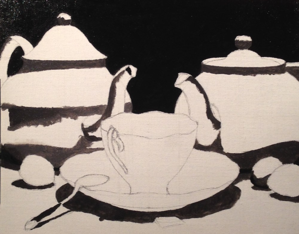 This is important because many beautiful colors are transparent to some degree. Without an underpainting, it’s difficult to convincingly give the illusion of a full-bodied object with this transparent paint – the plain background would simply show through and render the object flat.